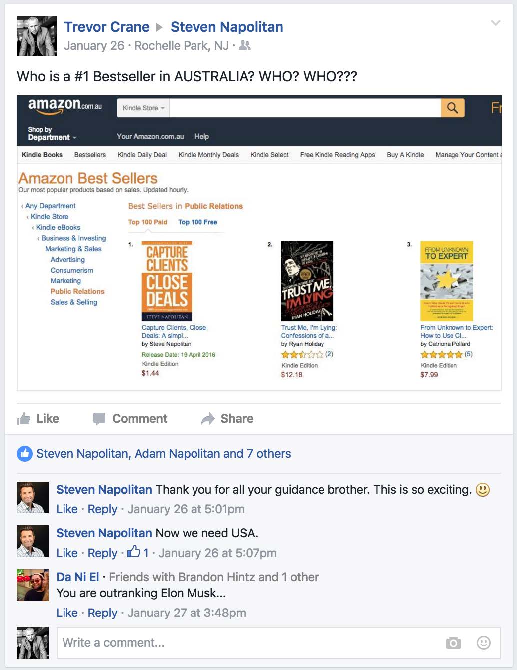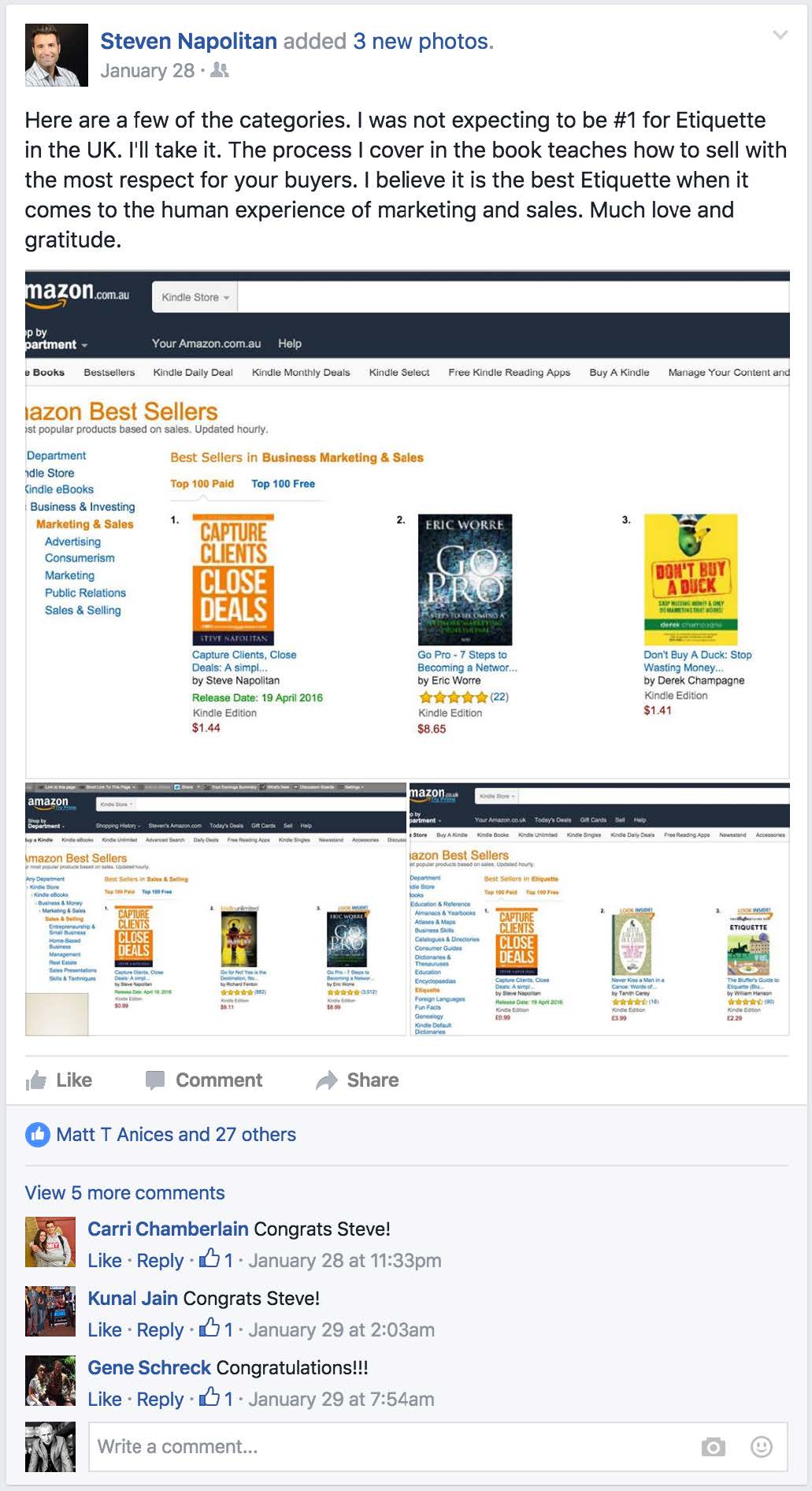 We took screenshots of a series of Steve’s Facebook posts from the moment this book became a #1 bestseller, to the time we made this document.