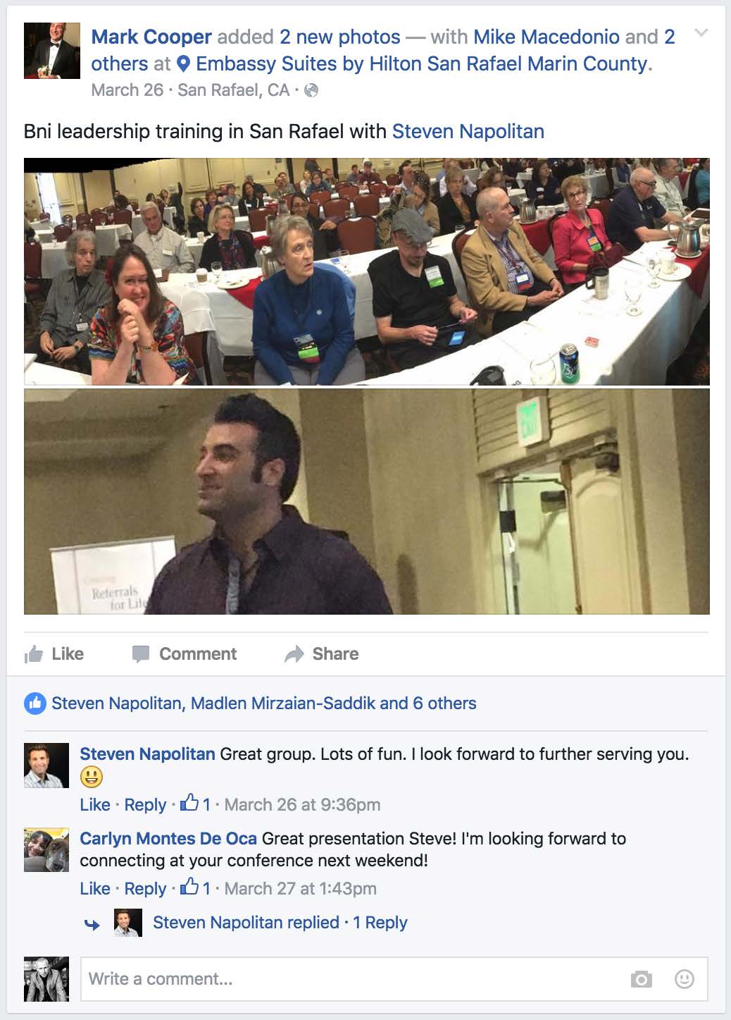 Notice the language and the strategy behind each post. Notice that they seem positive and celebratory, and that they make the reader feel-good about Steve and what he’s up to.
